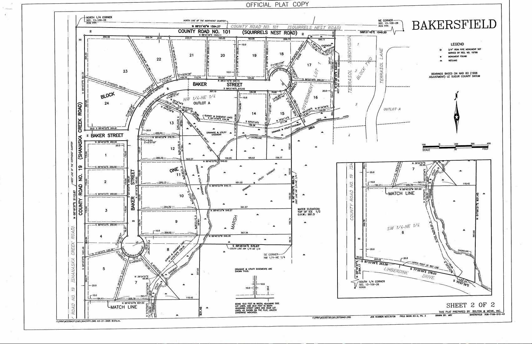 Map: Bakersfield, Kasota, Minnesota - Official Plat Copy
